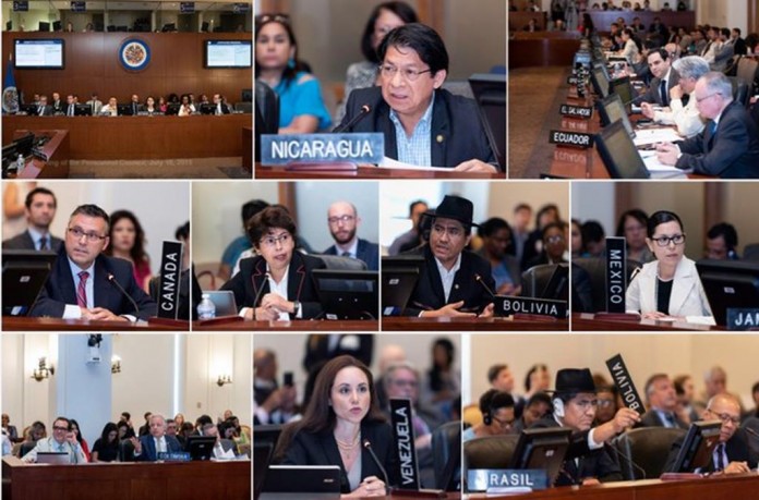 Pese a la estrategia de “victimización” adoptada y el intento de boicot a la sesión realizados por canciller de Nicaragua, Denis Moncada, con el apoyo de Venezuela y Bolivia, el Consejo Permanente de la Organización de Estados Americanos (OEA) aprobó, con 21 votos a favor, la resolución que condena enérgicamente al Estado de Nicaragua por los actos de violencia y muerte contra el pueblo nicaragüense.